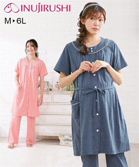 犬印本舗 パジャマ マタニティ ママ 産前 産後 授乳服 カットソー 前開き 半袖 ブルー/黒/杢ピンク 4L/5L/6L ニッセン
