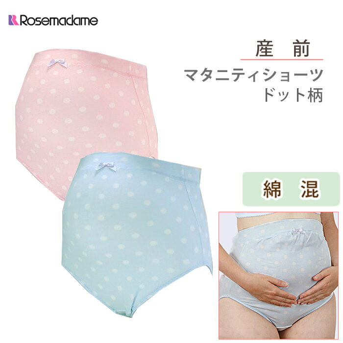 【メール便送料無料】 マタニティ ショーツ ローズマダム フェミニンシリーズ ドット柄 水玉 ピンク サックス 妊婦 マタニティー 綿混 かわいい シンプル