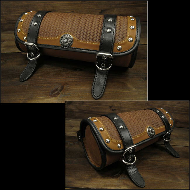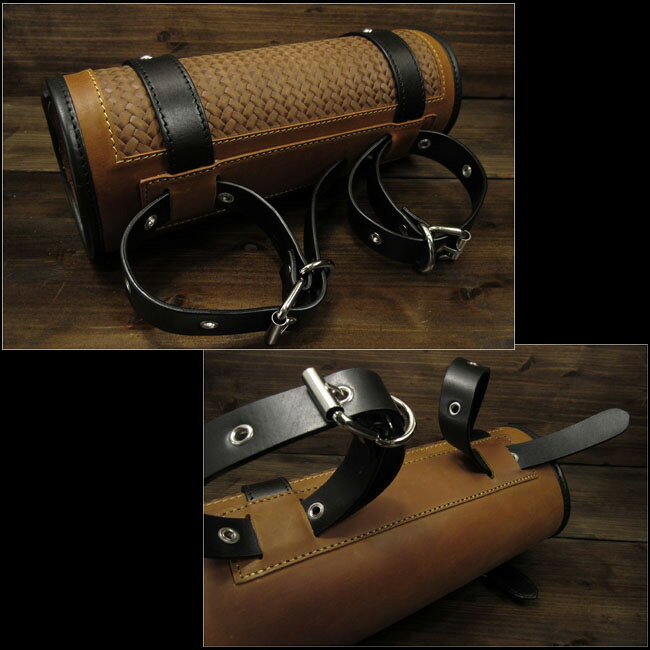 This tool bags are perfect to carry your tools or personal belongings on your motorcycle. Inside is lined with cowhide leather too.Excellent leather carving done by leather craftsmen. So the details(tastes) might be slightly different from the pictures. We ask for your understanding. Note ; There are some scars, wrinkles and markings on the surface. We ask for your understanding about these thing. ↑↓同型ツールバッグの装着イメージ画像です ↑↓ These pictures are(indicate) the same model of bags attached on a motorcycle. ■ 素材 MATERIAL ■ 牛革(Cowhide Leather) コンチョ:合金(Concho:metal) ■ サイズ SIZE ■ ■バッグ:Bag Size 直径(diameter)10.5cm 横(width)29cm ■取り付け用ベルト:Attachment Belt 全長(length)約45cm 取り付け可能サイズ 約9cm ~ 32cm (取り付け用に結束バンド2本もお付けしてお送りいたします。