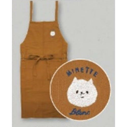 ニャンコ 肩紐エプロン かわいいネコの刺繍入り ベージュ 綿100% グロリア(株)