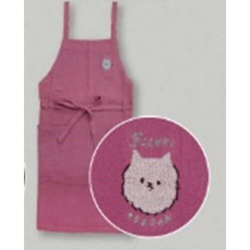 ニャンコ 肩紐エプロン かわいいネコの刺繍入り ピンク 綿100% グロリア(株)